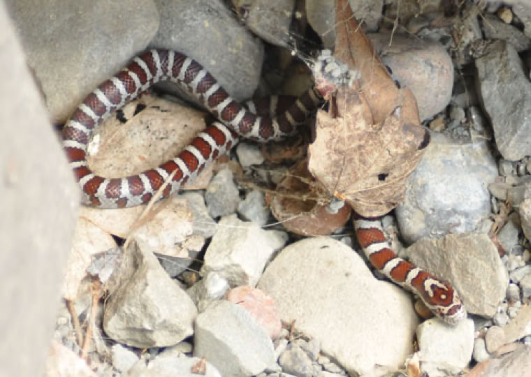 Milk snakes and garter snakes are often mistaken for timber rattlesnakes, even though they don't have rattles and are significantly smaller in size. Neither of them are venomous and are commonly found in neighborhood backyards.